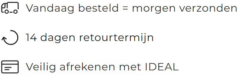 We bieden een retour- of omruilbeleid van 14 dagen als u om welke reden dan ook niet tevreden bent met uw bestelling. Voor meer informatie kunt u ons retourbeleid hier bekijken.